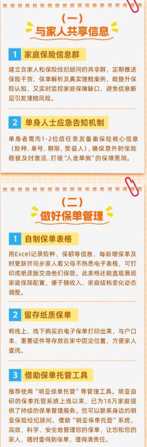 当房贷还款日的闹钟准时响起,当孩子的膏火通知单摆正在桌角,每个奔波的成年里都藏着一份“家庭平安清单”。我们习惯把存款数字、房产证明当做平安感的锚点,却常常忽略了另一份更现蔽的“平安暗码”——那些躺正在抽屉里的保单,以及被锁正在手机备忘录里的安全消息。